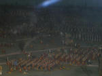 ジオラマで再現された戦の風景。30年戦争はプロテスタントとカトリック派の争いで、神聖ローマ帝国(昔のドイツ)が主な戦地となっている。後年、宗教戦争でなく、各国の権力争いに発展していった。参戦したスウェーデンの王、グスタフ・アドルフはこの近くで戦死している。右の写真は野営の再現。