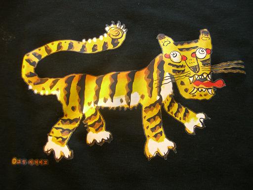 虎や豹が好きなので、こんな絵の描かれたTシャツも入ってた。これ・・・虎の威厳0やん!!