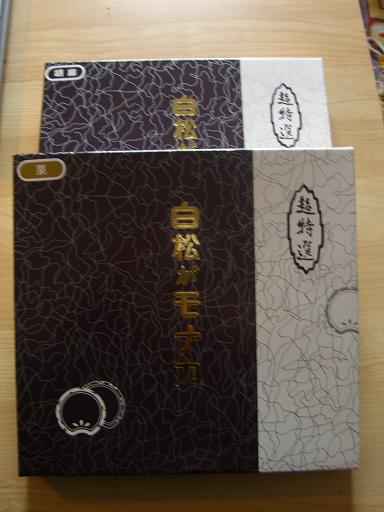 出た出たでたぁ~!!仙台の白松がモナカ♡ そうか。これが高かったのか・・・・と納得。モナカを送るとは言ってたけど・・・こんないっぱいやとは!!! しかし、全てワタクシが食べますよ!!先生や友達にあげる?そんなこと誰がしますか!!(うちの先生は餡子が苦手)大好きな白松がモナカ・・・亡きピアノの恩師、○橋先生のとこでよばれてから、GanmoとGanmo母は白松がモナカの虜です。今日はさっそく胡麻餡と大納言(つぶ餡)をいただきました。私が胡麻餡好きなのを知ってか、胡麻餡は一箱分送られてきた。ああ・・・・超美味い♡ 和菓子最高!!