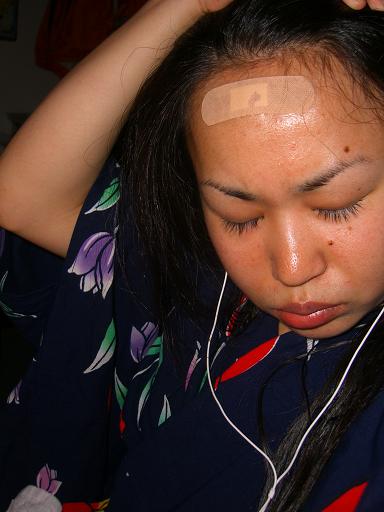 台所の机の角に思いっきり額をぶつけた。白い机、白い壁、白い床なので机の角が見えてなかったのでしょう。血がタラタラタラっと流れました。あー痛かった。数分で止血いたしました。明日からしばらくデコ見せて学校行かなあかんのかなぁ・・・