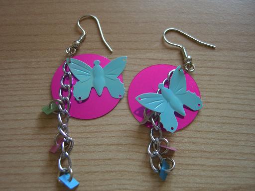 穴開けてないのにピアスを作ってしまった・・・・(こりゃもう開けないとね) スパンコールの蝶々とピンクのおっきいスパンコール。あと、鎖をたらして先に四角いスパンを繋いだ超軽いピアス(だと思う。まだつけてないからわかんない) ピンクスパンも蝶々がだいぶ前に買ったものなので傷が・・・でも遠くから色が映えるので良いかと。