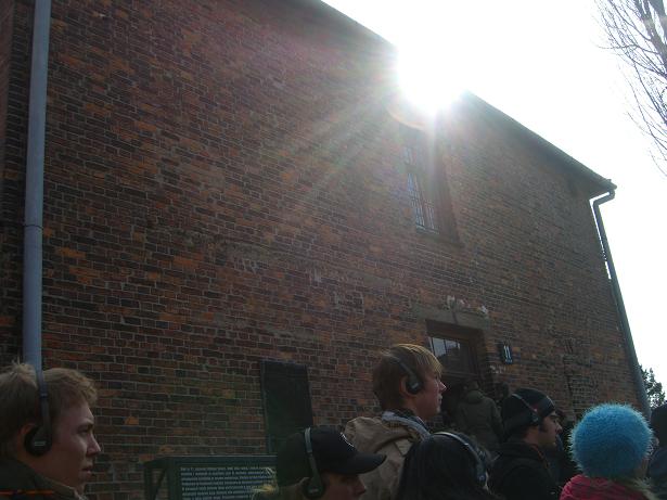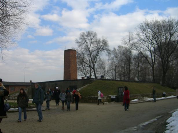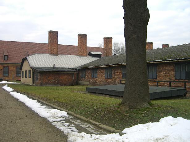 ガス室。と焼却炉。焼却炉へはトロッコ(列車)のレールが中にまでひいてあって、選別されて死を宣告された弱いお年寄りや子供達が送られた。1日に350人の死体も焼かれていた。この焼却炉の前で元収容所所長のルドルフ・ヘスの死刑が執行された。