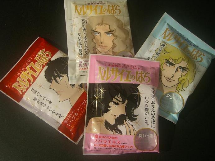 ベルバラ入浴剤。次回はアランとアンドレをご紹介できるかな。おいしいものを最後にとっておく性分なので♡もちろん男キャラで一番好きなのはアンドレです。でも最近暑くなってきたからいつのことになるのやら。。。。