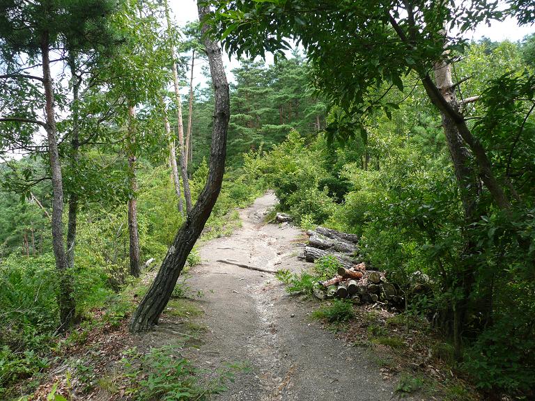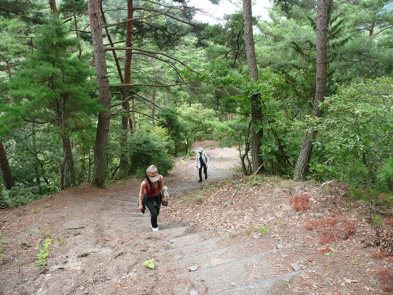 真田城跡に行ってみたら超マニアなおじさんが待機してはって『こんなとこきても無意味ですよ』って。そりゃそうか。安土城みたいにただ『跡』って碑が立ってるだけやもんね。話をよく聞いてみると、砥石山城という城跡からの見晴らしが良いとかで、それではそこへ行ってみましょうか。確かに砥石城って大河ドラマでよく聞く名前だなぁ・・・と。しかしこの道・・・山をひたすら登り。崖を登り・・・・右写真のがんもさん、とうとう本気モードを出す模様。
