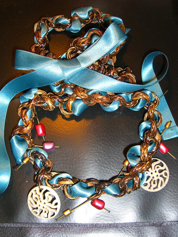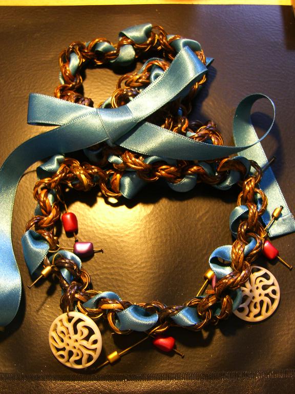 ターコイズとまではいかない水色と珊瑚色、とまでもいかない赤色ビーズのネックレス。ビーズより金具の方が重くて、直ぐに首からズレるのが難点・・・考えが甘かった