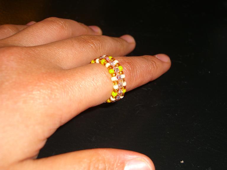 あんまり指輪はしないけど、ビーズの数がネックレスには足りなかったので作ってみた。最初の指輪はなんだかとうもろこしみたいな色になってしまったなぁ・・・ 下の指輪はもうちょっとインパクトのある色を付け足したらよかったんだが、木の感じのボタンといい感じ。・・・指輪って一体どの指に皆はめます?
