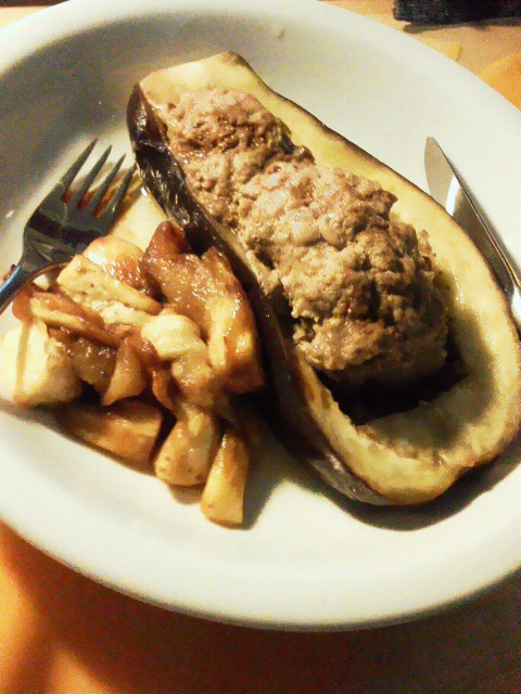 茄子の肉詰め。今回は中華風な味付けで Abendessen Aubergine Steak.