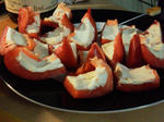 大好きな簡単おつまみ。Kiriをパプリカに塗りこんだだけ。 Paprika mit Kiri zum Knabbern :)
