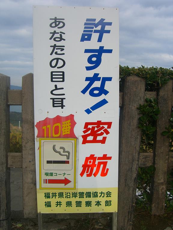 Die Fotos ist vielleicht von Tsuruga. Japanischessee ist einsam,denke ich immer.Im Winter glaube ich es. Und die Anzeige"die heimliche Überfahrt ist nicht Erlaubnis " Na,es gibt die noch !?