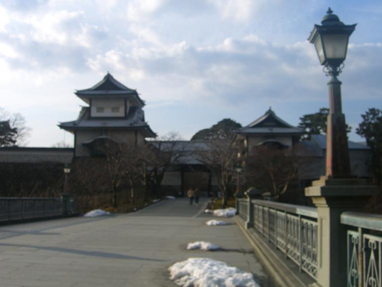 金沢城と兼六園。昔はお城の中に金沢大学があったのだが移築されてしまった。お城の中にある学校なんて彦根東高校と金沢大学くらいだったんだとか。兼六園は昔行ったことがあるので公園の手前まで。雪吊りしてある木に雪がバサッと積もっているのが冬の金沢の風物詩だと思ってたけど、雪は解けていた。