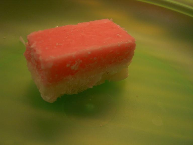 お雛様の菱餅に似ているけどその正体は ストロベリーとココナッツの氷砂糖的物体