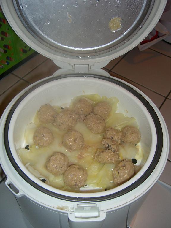 Ich habe Hackfleischbällchen mit Reiskocher gekocht. Die ist eine Rezept von meiner Mutter.