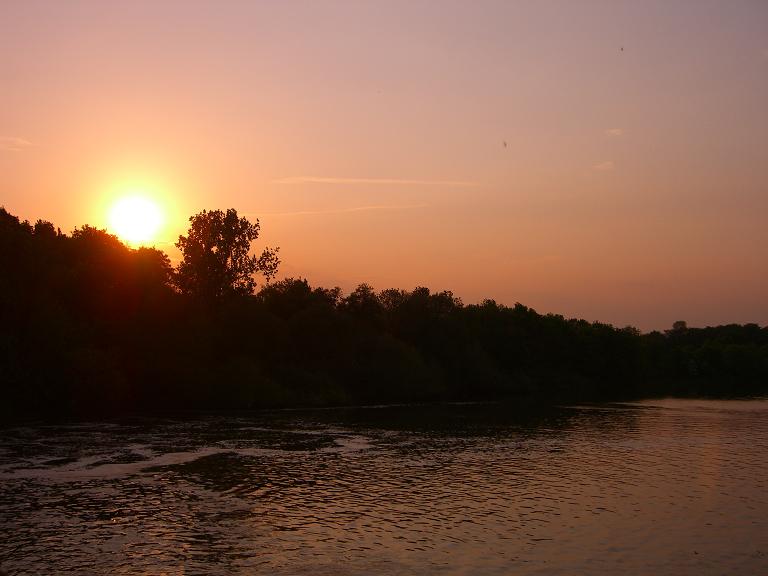 みてごらん、この高楼のてすりの外を 夕日が目に一杯真正面に見える
