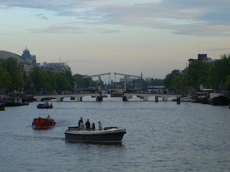 Amsterdam hat viele Kanäle und auch mit dem Boot fahren.