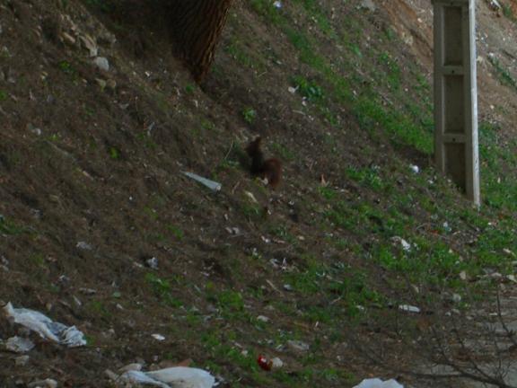 木の上のリスをじーっと見つめるわんちゃん。この旅で私はずいぶんとたくさんのリスを見ました。6匹くらい。