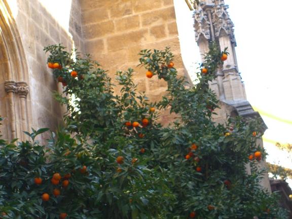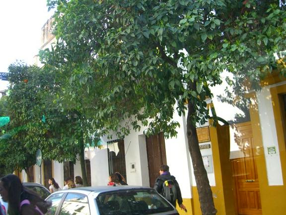 鉄道駅と平衡になってるバス駅を下り、バスで3,7、番などでサン・フェルナンドだかで下車。もう1ヶ月も前のことなので記憶があやふや・・・・写真はそのバス停の通り。オレンジの木がいっぱい