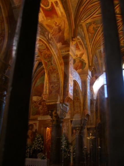 おっきな大聖堂。中も綺麗で、またもやネウマ譜で書かれたおっきな聖歌集があった。でも、教会前の道(街の本通)は花をおしつけてくるおばはん(スペイン人だけでなくアジア系のおばはんも!)いてうざい。バス亭があるから待ち人達も迷惑顔。